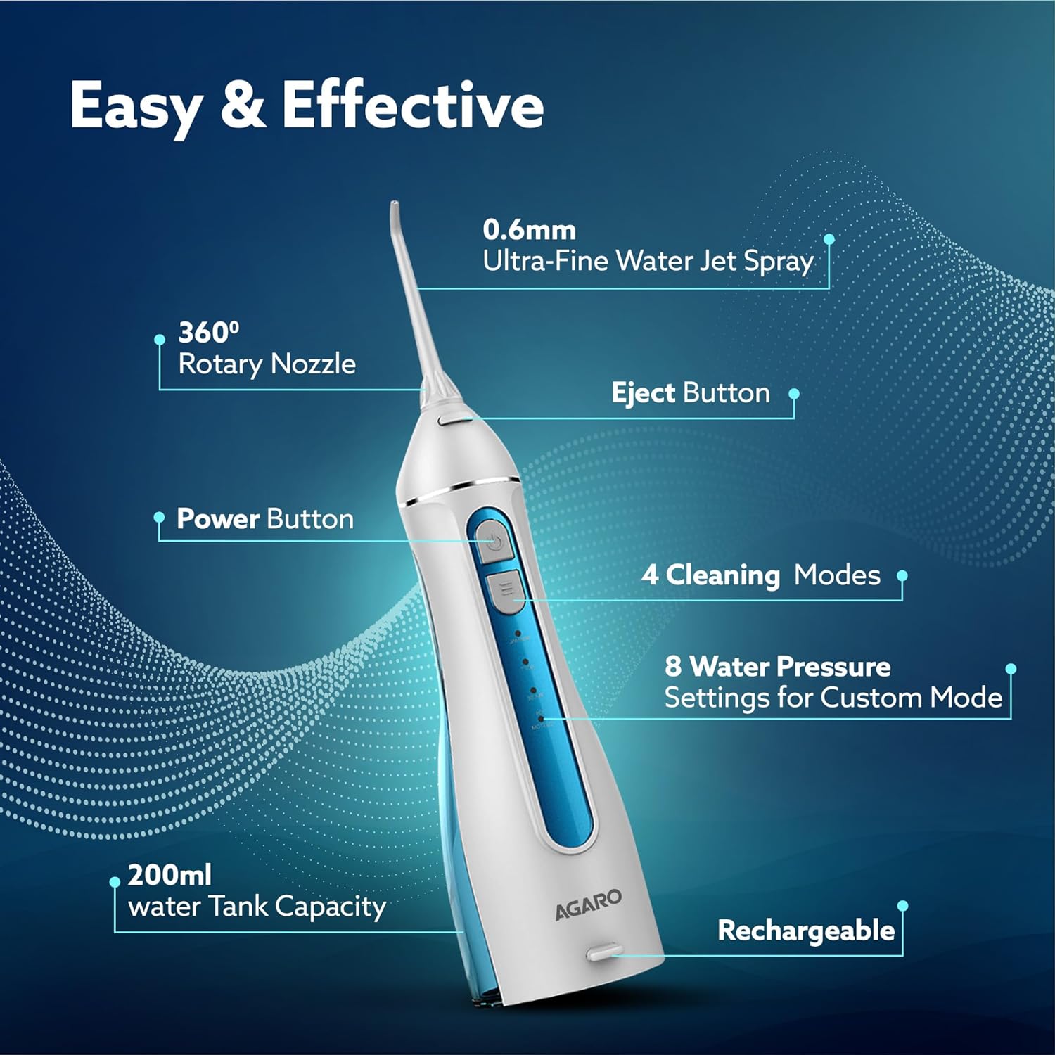 AGARO Ultra portable oral care Flosser 200 Come with 4 Operational Modes, Includes 1400 mAh Battery and 3W Power consumption