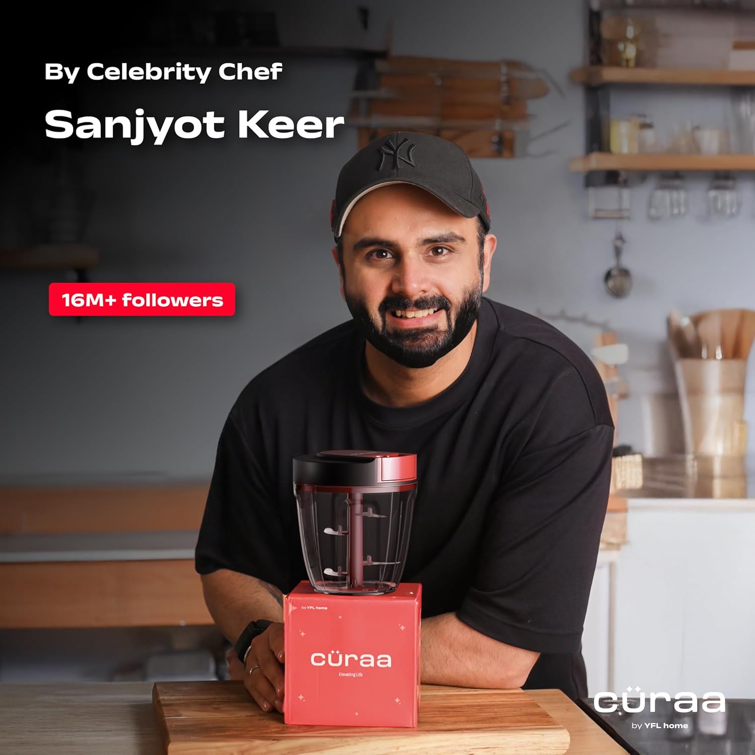 Cüraa by YFL home ChopLab Lite Chopper, Chops 24× faster than a knife – Save time and effort with every meal prep. Perfect for chopping vegetables, herbs, and nuts in seconds.