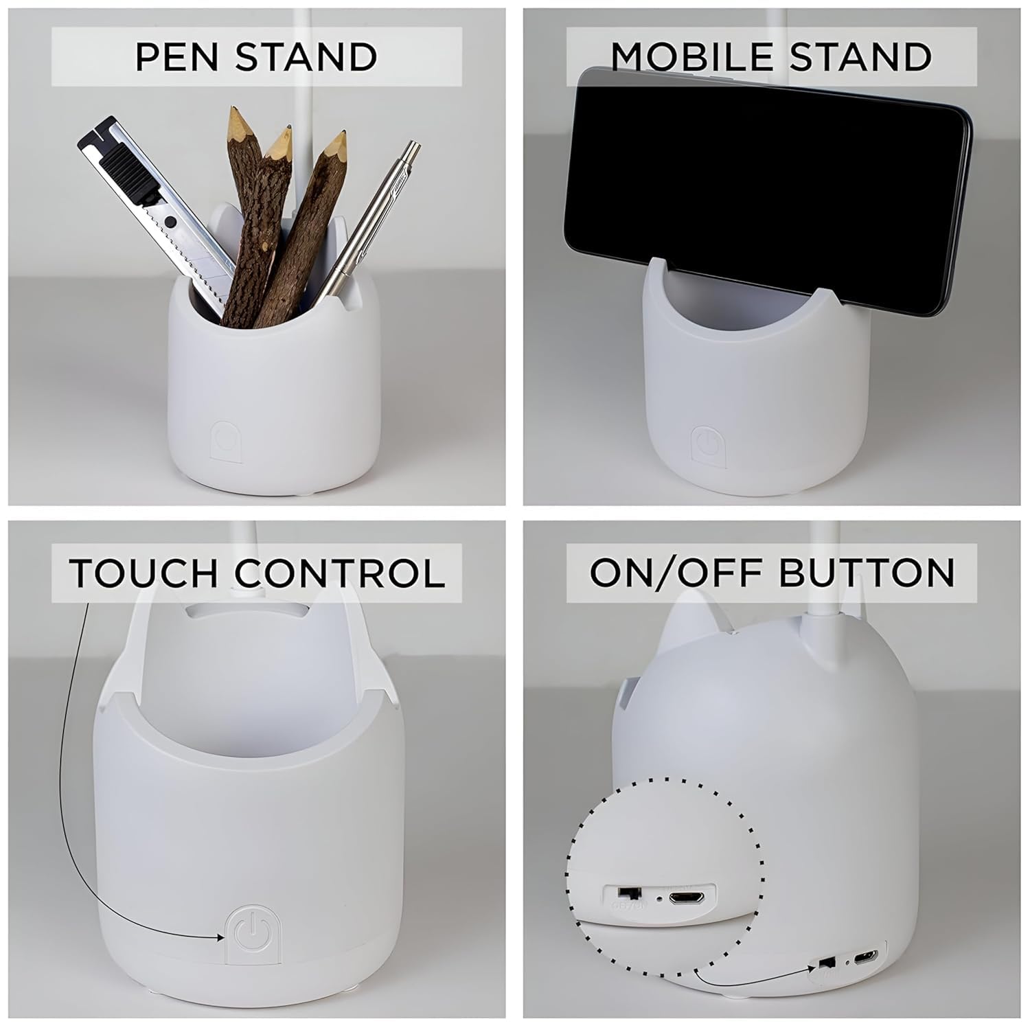 Fulminare Plastic LED Desk Lamp Dimmable Table Lamp Reading Lamp with USB Charging Port 3 Colour Mode,Touch Control Eye Caring, Desk Lamp for Study, Work (Round)