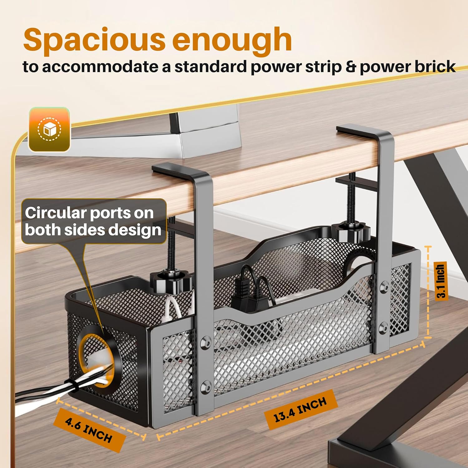 ✔ Strong, Spacious & Durable Tray: Made from premium materials, the cable tray under desk supports multiple devices and large adapters. This cable organiser box large fits seamlessly under any desk or computer table organiser.
