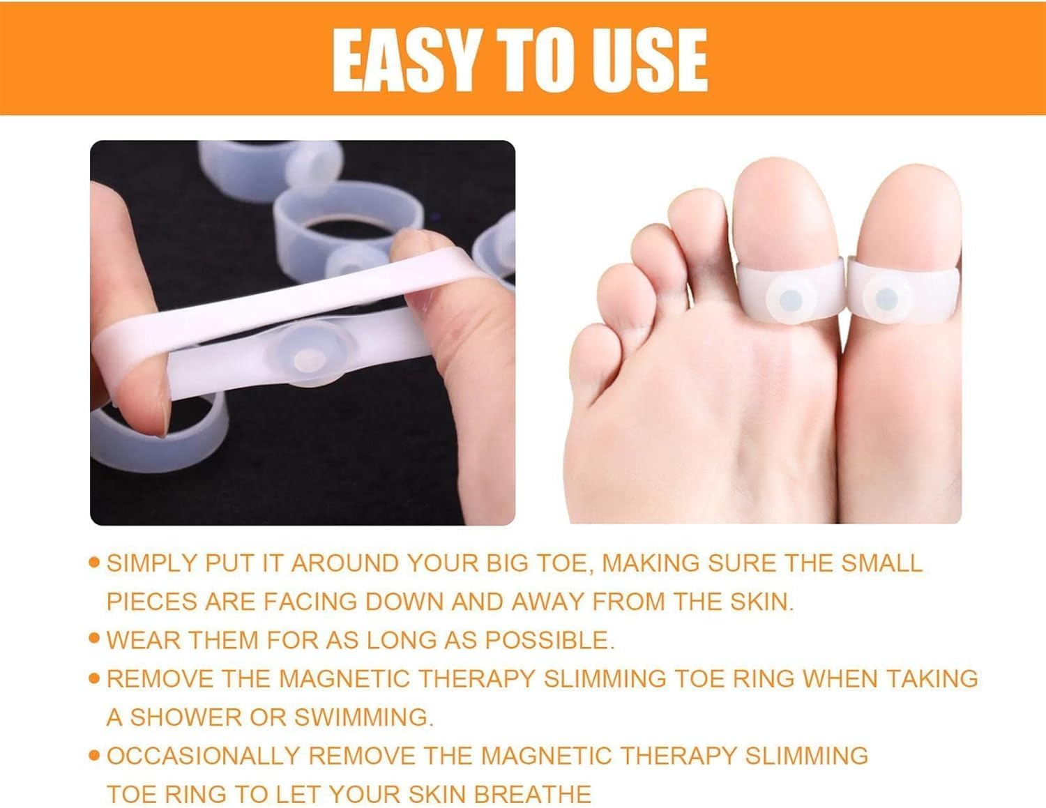 Pack of 1 Ring – Easy to Use: Comes with 2 rings 1 Set for both feet. Simply wear on your big toes regularly for best results. Reusable, washable, and durable