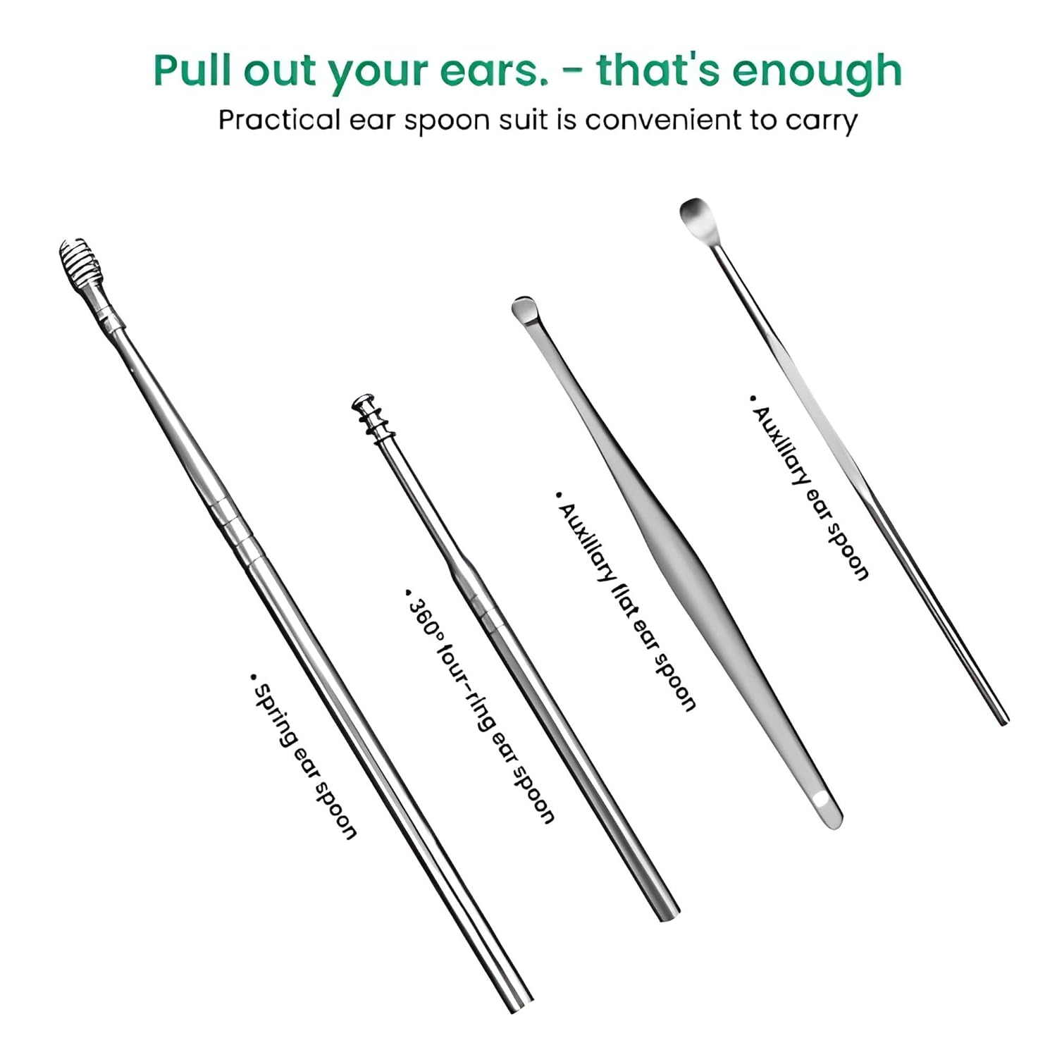 Spiral Design with Stainless Steel Ear Pick Ear Cleaner earwax removal tools along with 360°cleaning ear canal.It helps relieve itching during cleanin