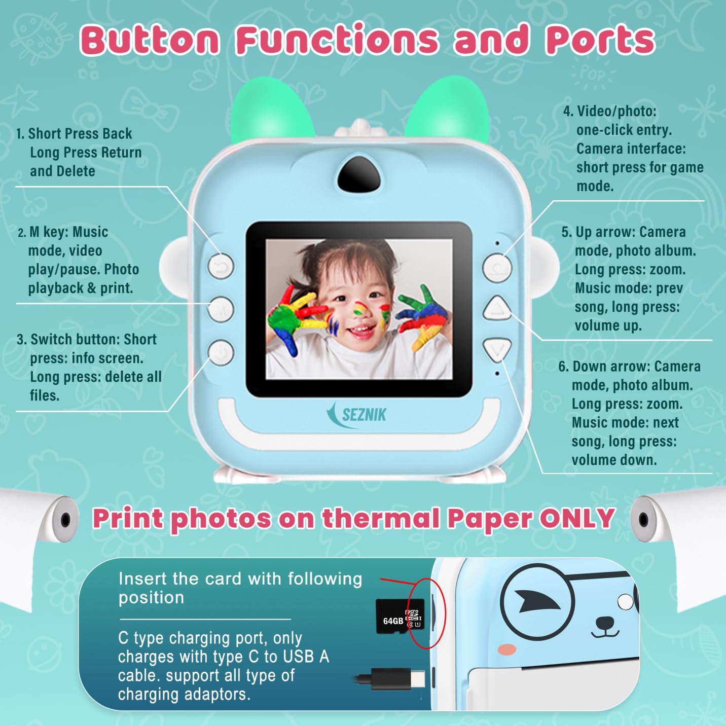 𝐀𝐋𝐋 𝐈𝐍 𝐎𝐍𝐄 – 𝐂𝐀𝐌𝐄𝐑𝐀 + 𝐕𝐈𝐃𝐄𝐎 𝐑𝐄𝐂𝐎𝐑𝐃𝐈𝐍𝐆 + 𝐈𝐍𝐒𝐓𝐀𝐍𝐓 𝐏𝐑𝐈𝐍𝐓 + 𝐕𝐈𝐃𝐄𝐎 𝐆𝐀𝐌𝐄𝐒 + 𝐌𝐏3 𝐏𝐋𝐀𝐘𝐄𝐑. 𝐂𝐎𝐌𝐏𝐀𝐂𝐓, 𝐋𝐈𝐆𝐇𝐓𝐖𝐄𝐈𝐆𝐇𝐓 & 𝐙𝐄𝐑𝐎 𝐌𝐀𝐈𝐍𝐓𝐄𝐍𝐀𝐍𝐂𝐄: Dimensions – 10 x 4 x 9 cm. Weight- 200gm, Zero maintenance Ink-less printing, No Cartridge, No Ink required, smart thermal technology to print. Just use cheap eco-friendly thermal paper. It is cost effective, new age technology.