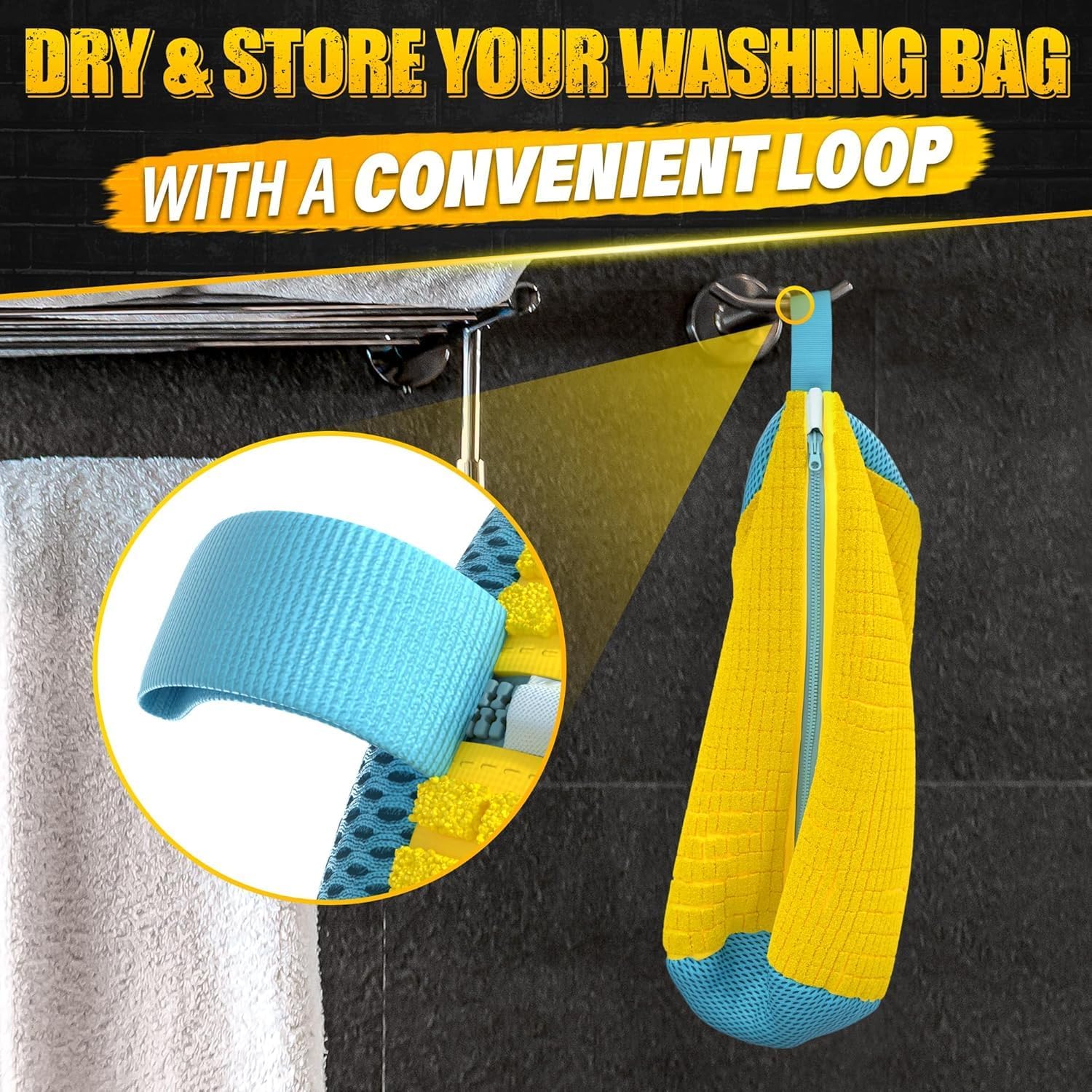 Durable Invisible Zipper: The hidden zipper on this shoe cleaning bag is designed with a protective cover to avoid scratching your washer. Plus, the convenient hanging loop makes it easy to store or air-dry your shoe washing bag after use. Keep your shoes secure and safe in the wash, then effortlessly hang them to dry—perfect for a hassle-free laundry day