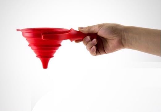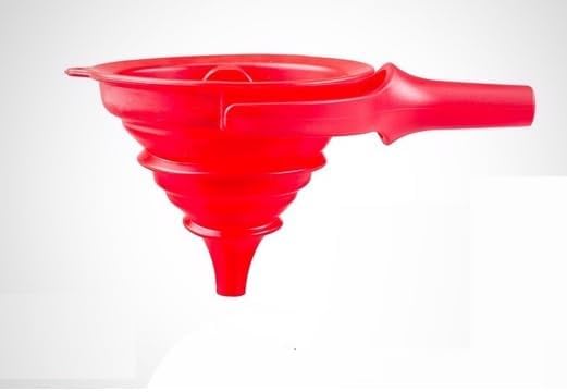 SPACE-SAVING COLLAPSIBLE DESIGN: The genius “accordion” folding mechanism allows the funnel to expand for heavy-duty use and collapse down to a flat profile. Perfect for neat storage in kitchen drawers, cabinets, or hanging on hooks.