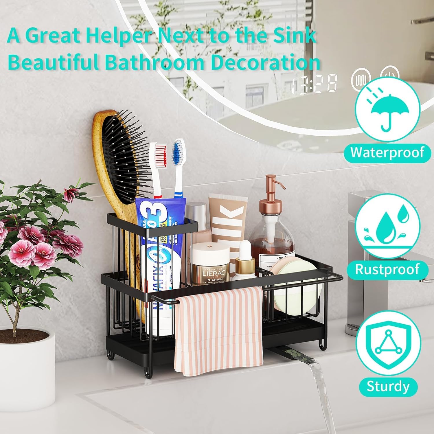 [Durable Stainless Steel]: Constructed of 304 stainless steel with a layer of anti rust coating, Hapirm kitchen sink caddy can effectively prevent rust even in wet conditions and has a long service life. Enjoy reliable storage with our dish sponge holder