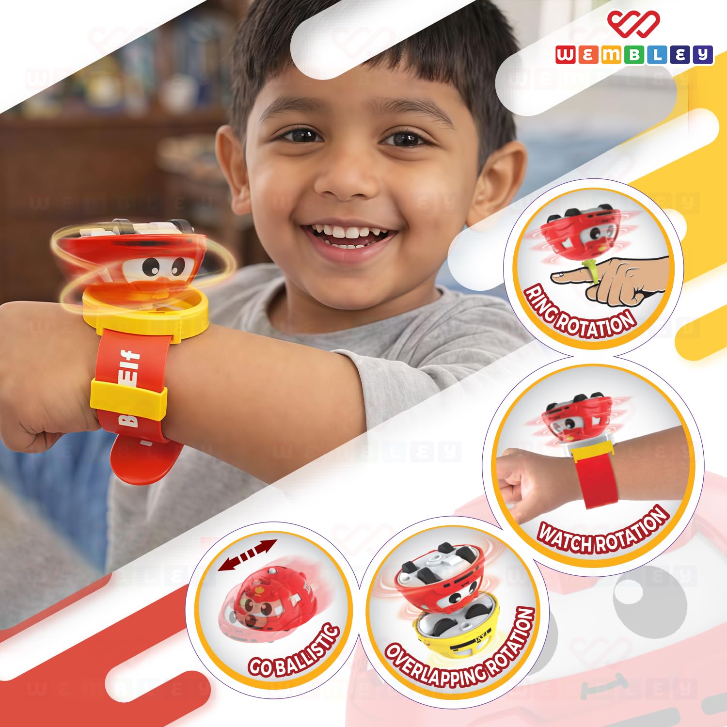 Wembley Gyro Chariot Watch for Kids | 2-in-1 Launcher Watch with Spinning Top | Fun Battle Toy for Boys & Girls | Adjustable Strap, Safe Material, Indoor & Outdoor Play Red